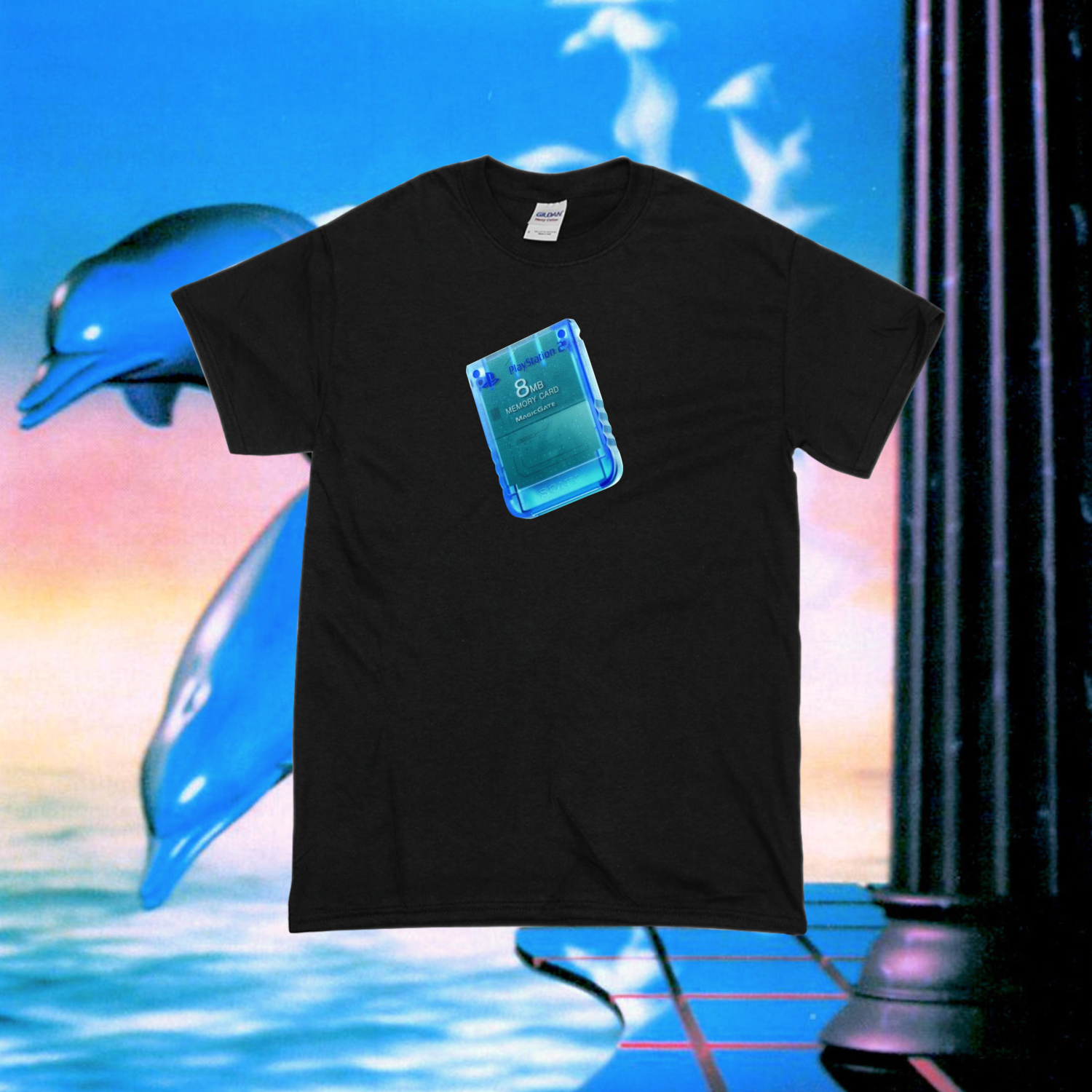 Vaporwave Playstation Memory Card T Shirt Black | Streetwear shirt | Vaporwave T-shirt | Glitch Art Aesthethic T-shirt | Pastel goth shirt