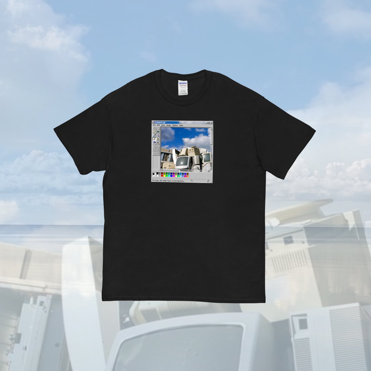 Retrowave Windows 95 True Sky T Shirt Black