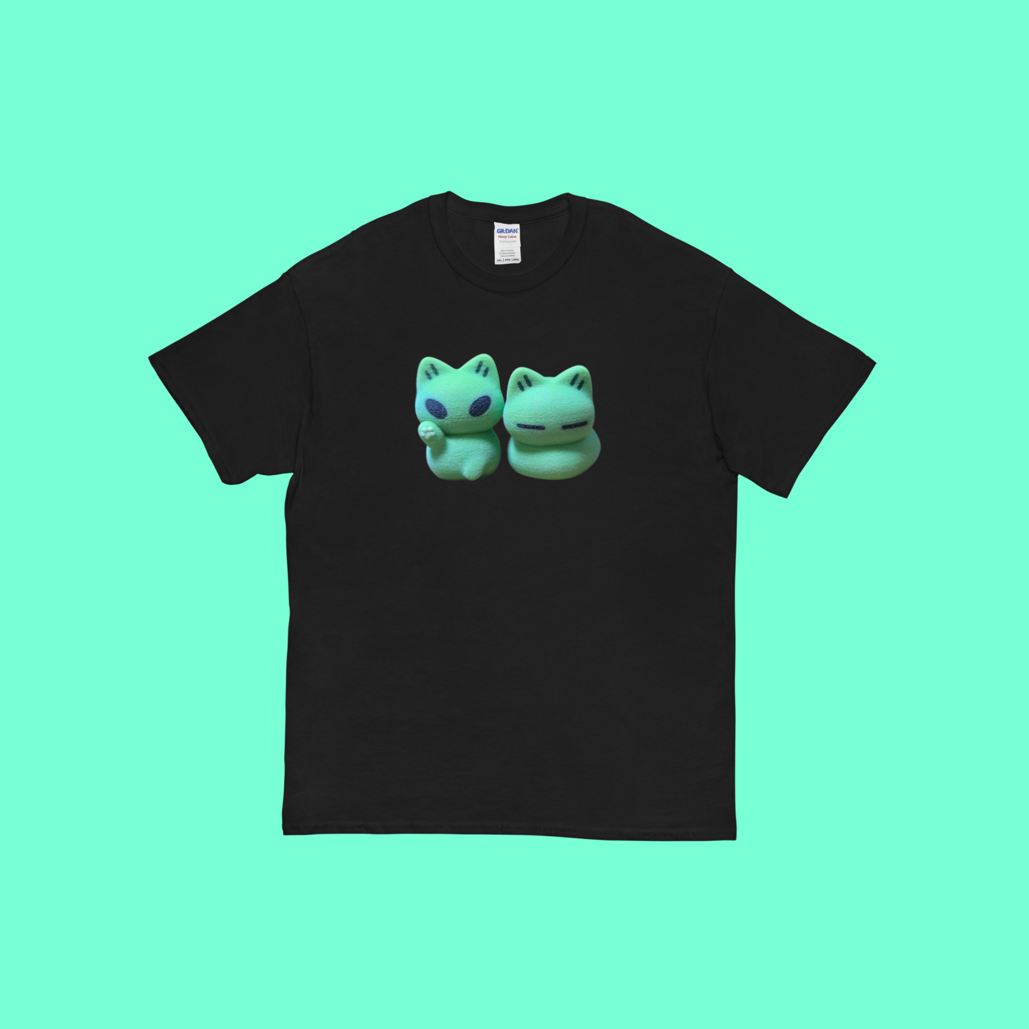 Neon Alien Cat T Shirt Black